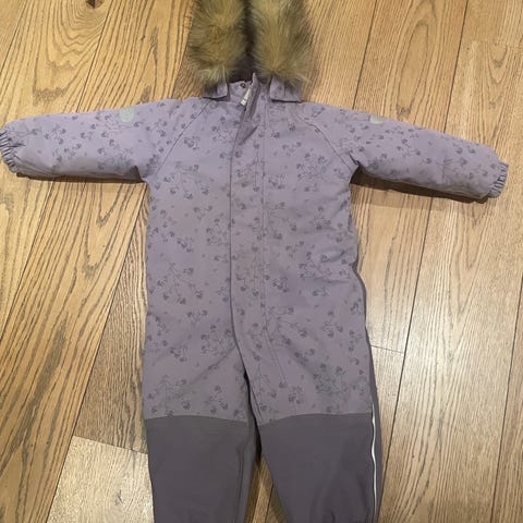 Reflex kjeledress for jente i størrelse 86. Kjeledressen er rosa med mønstret overdel og detaljer som potetrykk. Den har hel glidelås foran og strikk under føttene for å holde buksebena på plass. Egner seg som yttertøy for små barn i barnehagealder.