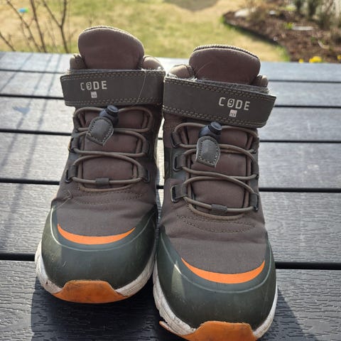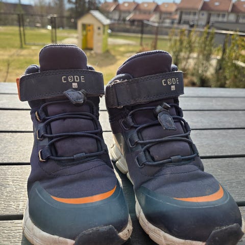Reima TEC overgangssko størrelse 34. Skoene er i blå farge med røde lisser og borrelås øverst for enkel lukking. Modellen er høy som går litt opp over ankelen og gir ekstra støtte. Lite brukt og i god stand.