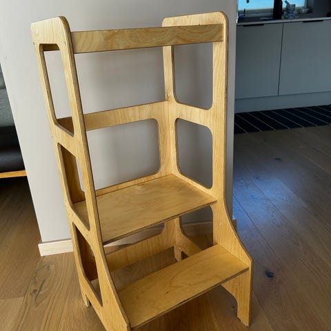 Kjøkkenhjelper i tre i naturfarge. Kjøpt ny på jollyrom i desember 2024, og lite brukt. Merke Tissi. Ny pris 1799kr.