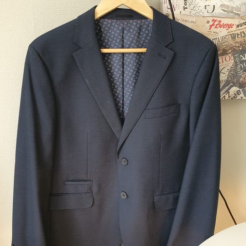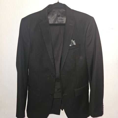Mørk blå dress fra H&M i str 14 år. Brukt en gang i konfirmasjon i fjor. Kjempe fin til en ok pris.
