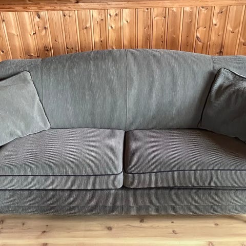 Sofaen har stått på ei hytte, og er derfor lite brukt. Noen av putene er litt «nuppete», men dette kan nok fjernes med nuppefjerner. Ingen flekker/merker.