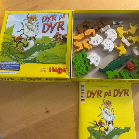 Treleke labyrint med dyremotiv. Fargerik kvadratisk plate med utskåret labyrintbane og små kuler som kan flyttes rundt i sporet. Motivet viser dyr, trær og frukt i sterke farger. Egnet som aktivitetsleke for barn til trening av finmotorikk og koordinasjon.