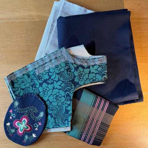 I tillegg inneholder pakken stoffrester fra vest, som kan brukes til blant annet å sy diadem eller annet tilbehør