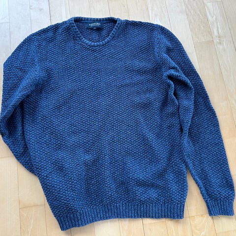 Hugo Boss genser for herre i størrelse som oppleves som M (står S). Genseren er beige og strikket i ull. Den har rund hals, ribbekanter og flettestrikket mønster foran og på ermene. Passer til hverdagsbruk og kan kombineres med både jeans og chinos. Vask og vedlikehold etter anvisning på merkelappen, ullprogram anbefales.