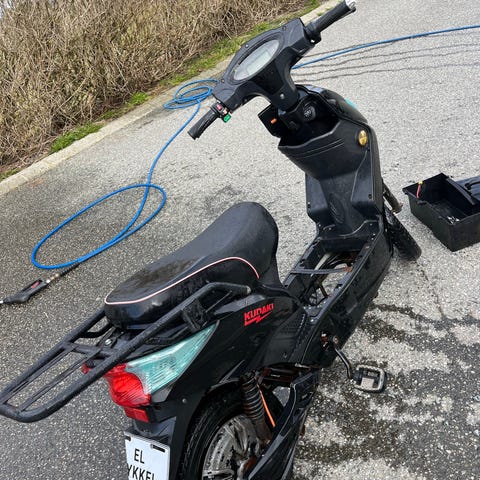 Elsykkel til ungdom, hastighetsbegrensning på 25 km/t. Batteriet må byttes og nye pedaler må monteres. Ellers et helt og greit eksemplar. 2023-modell.