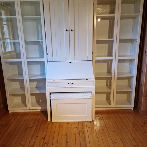 4 stk Billy bokhyller bjørk, 2 stk m glassdører - 202*28*80 selges kr 100 per stykk. Kr 300,- for alle fire.