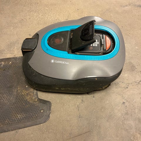 Selger gardena robotklipperen min grunnet overgang til nytt merke. Klipperen har defekt hjulmotor på venstre hjul. Ny drivmotor koster ca. 2'190 kr.