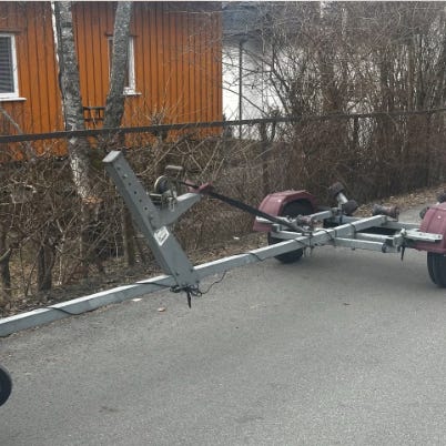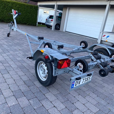 Båthenger med enkel aksel og justerbare ruller og vinsj på justerbar arm. Nye LED-lys.