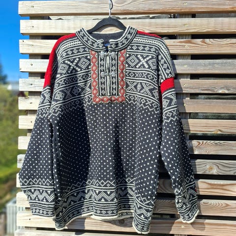 Flott hjemmestrikket herregenser i garn fra Dale. Pent strikket og lite / pent brukt.