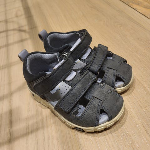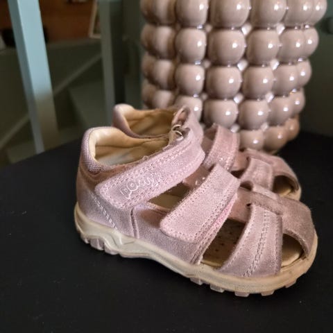 Myke fine sandaler i gammelrosa, lukket front på sandalene som beskytter små tær på oppdagelsesferd på solrike dager.