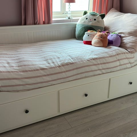 Selger en Hemnes dagseng fra IKEA. Praktisk og plassbesparende løsning som fungerer både som sofa og seng, og kan trekkes ut til dobbel når det trengs. Perfekt til gjesterom, ungdomsrom eller som fleksibel soveplass.
