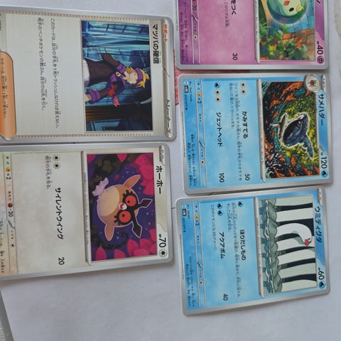 Helt ferske japanske pokemonkort selges. Kortene er pullet selv og blitt lagt rett i sleeve og toploader med en gang. De fleste kort har pris og noen har bud da prisene er overalt på de. Åpen for bud på alle kort.