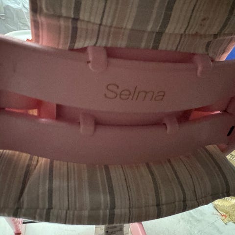 høy barnestol i rosa farge. Stolen har justerbart sete og fotbrett som kan tilpasses barnets høyde. Egnet som spise- og sitteplass ved bord. Klassisk trappeutforming som gir god støtte for barn som sitter ved spisebord eller arbeidsbord.