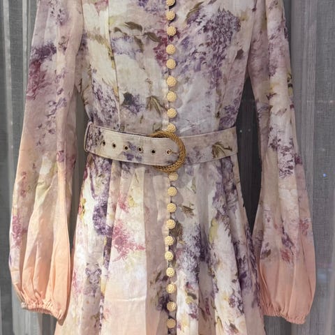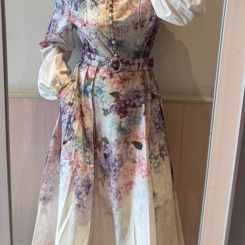 Nydelig midikjole som passer fint til bryllup, vår, sommerfest osv. Passer en small. Kjolen er i viskose og kun brukt en gang. Umerket kjole i viskose stoff. Ligner Zimmermann.