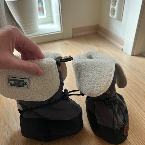 Avtakbart, lyst fleecefôr som gir ekstra varme. Egnet som overtrekkssko til små barn i vogn eller bæretøy i kaldt vær.