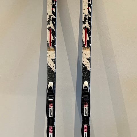 Langrennski med binding. Lengde 200 cm. Klassiske ski med innsving og stålkantfri såle. Undersiden har glatt såle som krever smøring. Skiene leveres med monterte bindinger som passer til tradisjonelle langrennsstøvler med tilsvarende bindingssystem. Egner seg til bruk i preparerte løyper. Hentes i Oslo.