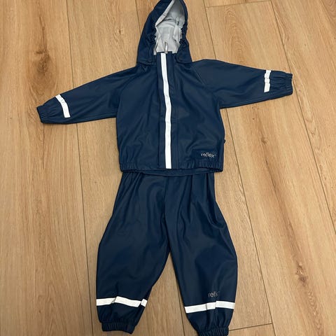 Reflex regnsett for barn i størrelse 86. Sett består av regnjakke og regnbukse i polyester.