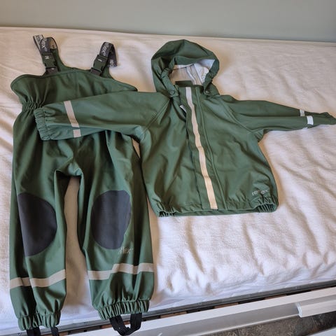 Pent brukt sett uten slitasje. Jakken har noen flekker på innsiden (ikke forsøkt vasket i maskin, usikkert om de går bort), men dette er kun innvendig.