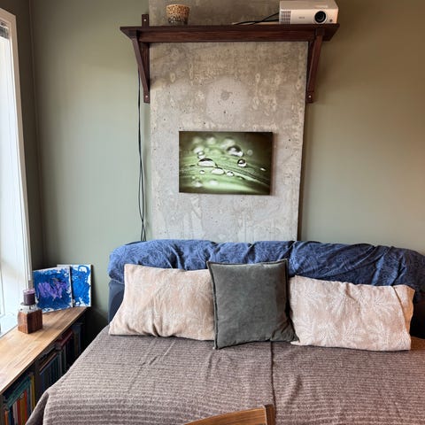 Det medfulgte ikke alle festebraketter/skruedeler, men ser at tidligere eier har boret hull i veggskinnene for direkte montering på vegg.