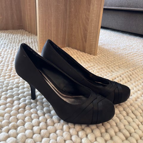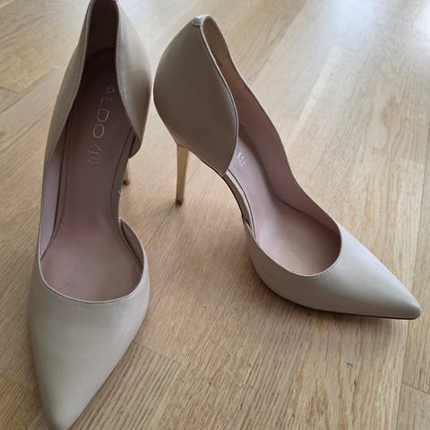 ALDO hæler i størrelse 39. Svarte pumps med smal hæl og avrundet tå. Velur materiale. 10cm hæl.