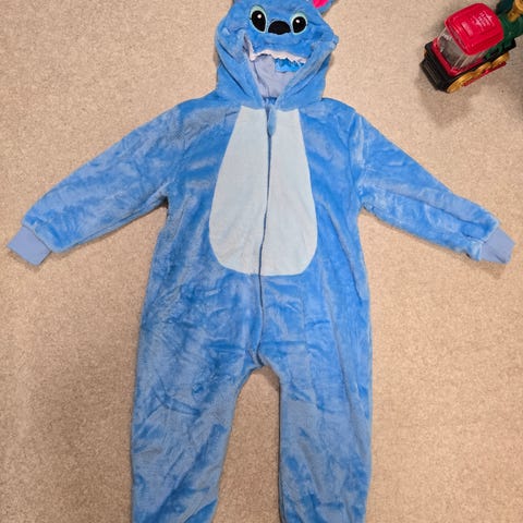 Deilig Stitch onepiece i fleeceaktig stoff. Hetten ka løsnes. Str 134/140