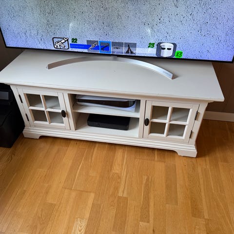 Selger tv-benk som er godt brukt, materiale av tre. Malt i hvitt. Vil bare få det bort mtp flytting, kom og kjøp!