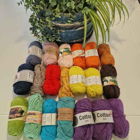 Passer til prosjekter som håndklær, kluter, tepper, gensere, topper og annet håndarbeid der bomullsgarn ønskes. 150kr/stk