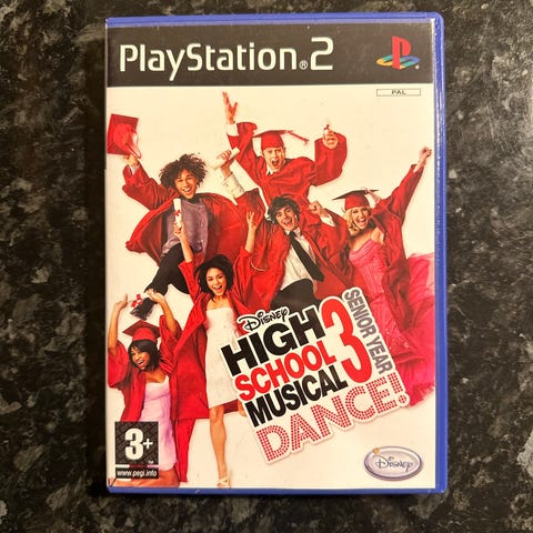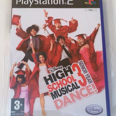 Dansespill basert på filmen High School Musical 3: Senior Year til Playstation 2. Spillet leveres på DVD-plate i original plastboks med omslag. På forsiden er aldersmerking 3+ (PEGI).