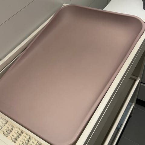 Leander stellematte i rosa farge. Stellematten har en glatt, lettstelt overflate og er formet med myke kanter for å gi et stabilt underlag ved stell av baby. Egnet til bruk på stellebord eller andre plane overflater der man ønsker et fast og komfortabelt stelleunderlag.
