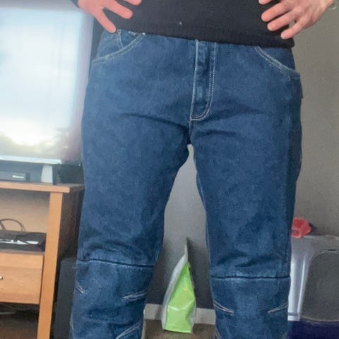 Draggin Jeans Dffuse motorsykkelbukse i jeansmateriale. Buksen er i blå denim og har CE-godkjente beskyttere (Approved Protector, AA-klassifisering etter EN 17092-3:2017). Størrelse 32. Innvendig meshfôr for ventilasjon og komfort. Egnet som beskyttende bukse ved motorsykkelkjøring, med utseende som vanlig jeans.
