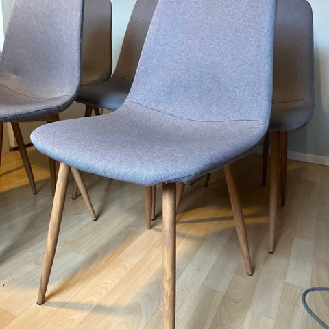 Fine og meget gode stoler med eikeben selges. Normal bruktslitasje.