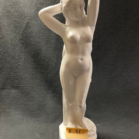 Figuren er generelt i god stand, men har en brukket tommel (se bilde). Ingen andre skader eller sprekker. Skaden påvirker ikke helhetsinntrykket, men er selvsagt tatt hensyn til i prisen.