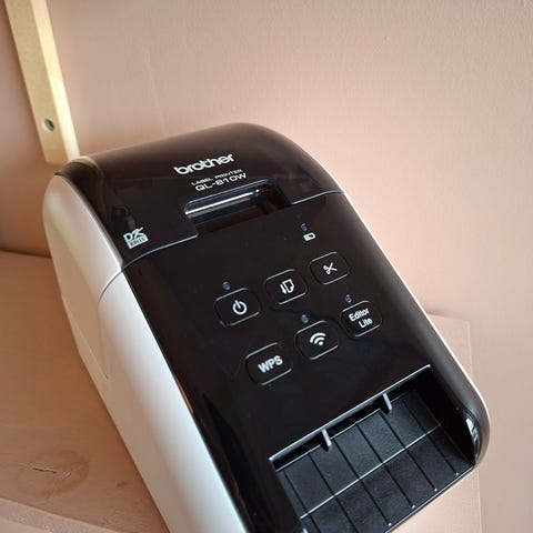 Skriver både vanlige etiketter og plasttape (D1). Perfekt til kontor, lager eller organisering hjemme.