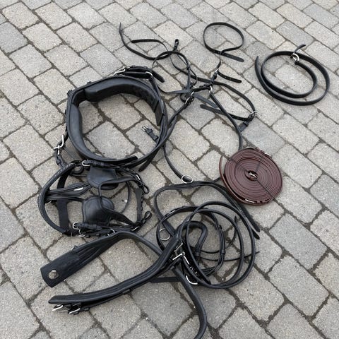 Kun brukt et par ganger til tømmekjøring da den var for liten til hesten min. Tømmer medfølger ikke.