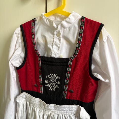 Pent brukt festdrakt fra Små troll i str 10-11 år selges. Skjorte selges også med , Cubus str 134-140.