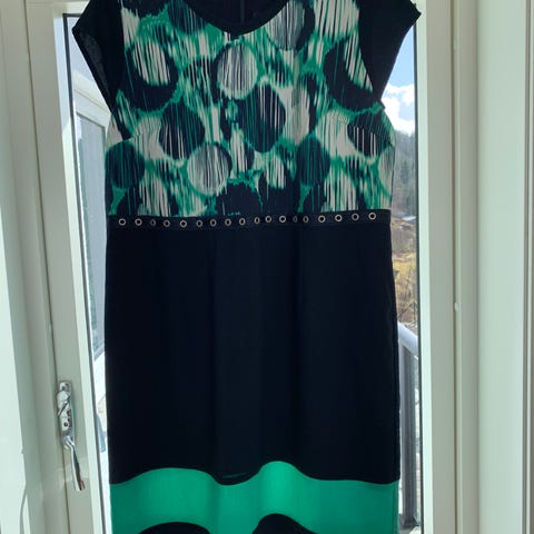 Pent brukt kjole fra Hanna str.xl/xxl. Flerfarget med ensfarget svart bak på kjolen og på ermene.