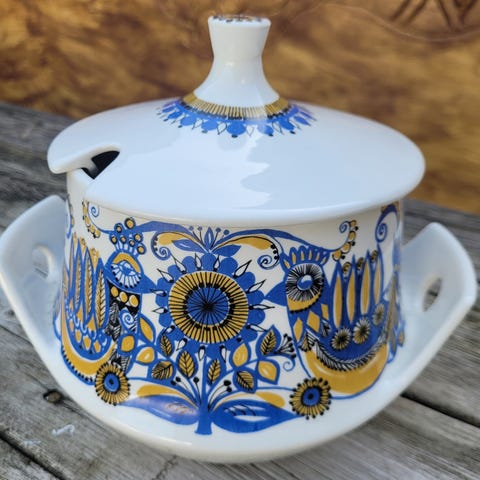 Sjeldent fin terrin med lokk fra «Grill»-serien til Figgjo og Turi Design selges for 400,- 💛💙🤍