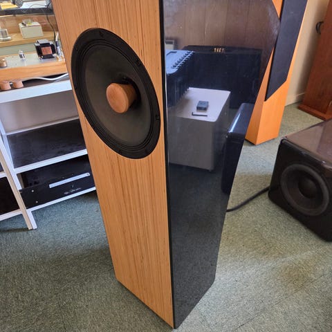 Audio Physic Scorpio 2 i Valnøtt som dessverre har blitt for store for stua etter oppussing.