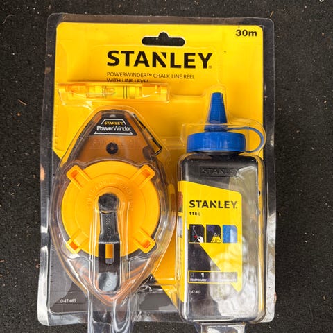 Fleksibel bomullsline i beholder som enkelt fylles med krittpulveret som medfølger.