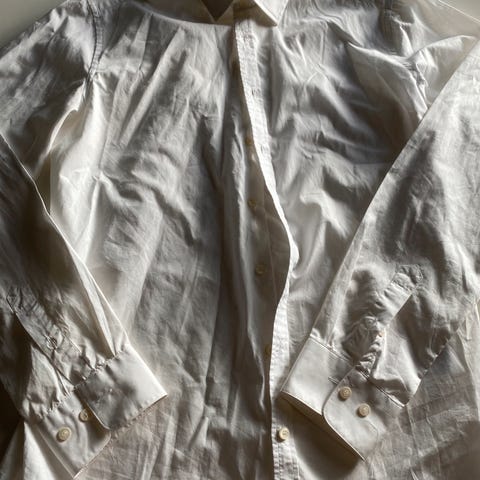 Tiger of Sweden skjorte for herre i størrelse L. Skjorten er hvit og laget av bomull. Klassisk modell med krage og lange ermer. Egnet til bruk både til hverdags og mer formelle anledninger.
