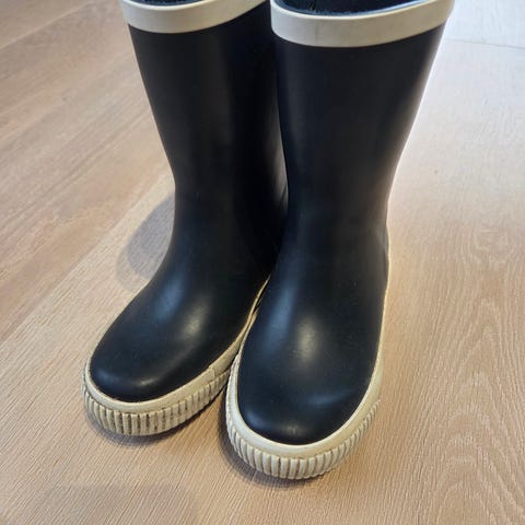 Reflex gummistøvler for barn, unisex, i størrelse 29. Støvlene er i blå farge med lys kant og såle. Klassisk modell i gummi som passer til bruk i regnvær og vått underlag. Egnet til både gutter og jenter i aktuell skostørrelse.