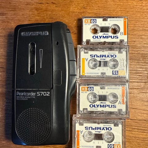 Microkassette recorder. Olympus Pearlrecorder L400.