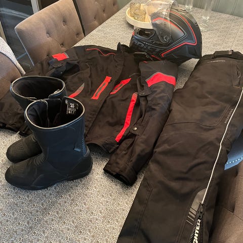 Motorsykkeljakker, bukser og hjelmer i pent brukt stand