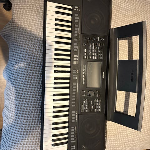 Yamaha keyboard med tangenter i full størrelse og innebygd display. Modellen har flere funksjonsknapper og kontrollhjul for justering av lyd og innstillinger. Egnet til øving, musikkproduksjon og generell bruk hjemme eller i øvingsrom.