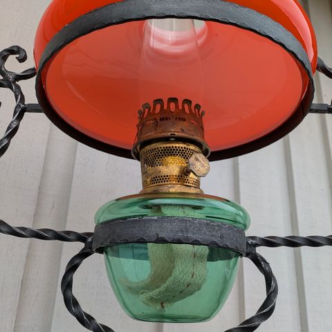 1. Unik taklampe, ukjent produsent - i smijern, hamp? Og tykt glass. E27 sokkel pære. Er fra 1930 tallet.. Bud over 200kr
