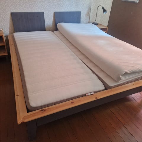 Vi har også brukt overmadrass, men den er kastet.