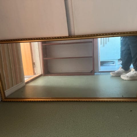 Speilet har en avlang, avrundet form og er innrammet i treverk. Passer til bruk i gang, soverom eller andre rom der det er behov for et veggspeil. Designet gir et enkelt og funksjonelt uttrykk som kan kombineres med ulike interiørstiler.