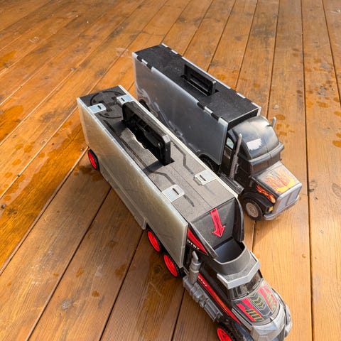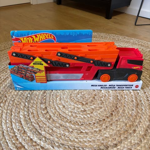 Hot Wheels lastebil transporter i plast. Lastebilen kan brukes sammen med andre små biler og tilbehør fra Hot Wheels.