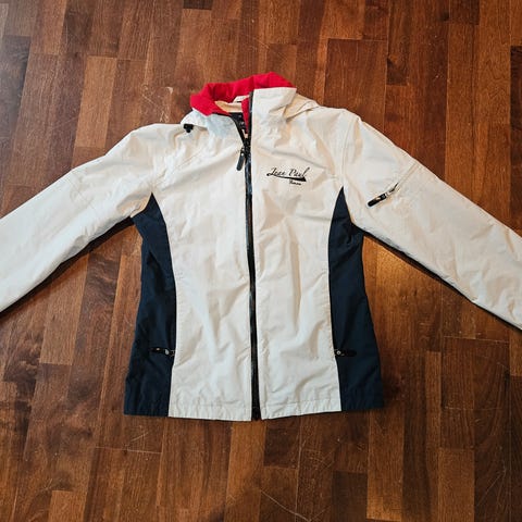 Helly Hansen seiljakke for dame i størrelse M. Jakken er rød med kontrastfelt og tydelig HH-logo. Ytterstoff i polyester med Helly Tech Protection-membran som gir vann- og vindtett beskyttelse med pusteevne. Modellen har høy krage og hette, samt justeringsmuligheter for passform. Egnet som ytterjakke til seiling og annen bruk i fuktige og vindfulle forhold.
