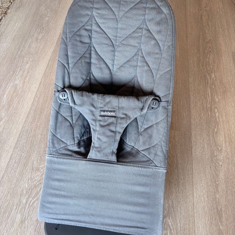 Babybjörn vippestol i grå farge. Vippestolen har polstret sete med quiltet mønster og integrert sele for å holde barnet på plass. Egnet til små barn som trenger støtte til å sitte og ligge, og kan brukes som avlastningsplass i hjemmet, for eksempel i stue eller barnerom. Stofftrekket kan tas av for rengjøring etter produsentens anvisninger.